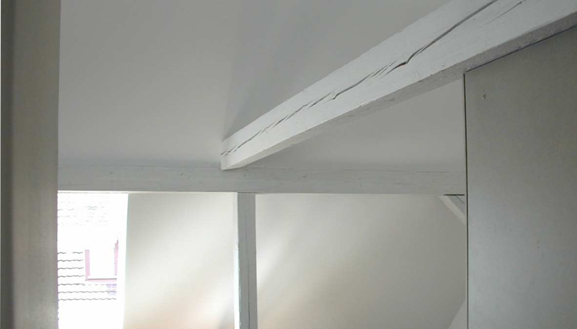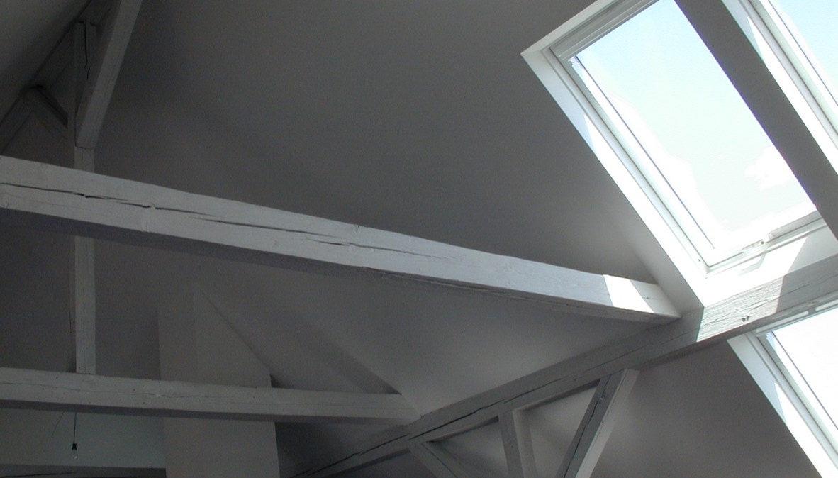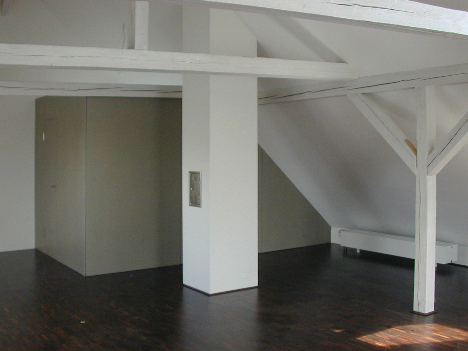 Der bisher nur als Lager genutzte Dachraum eines Wohnhauses aus den 30er Jahren sollte als Arbeitsraum mit Nebenräumen nutzbar gemacht werden.