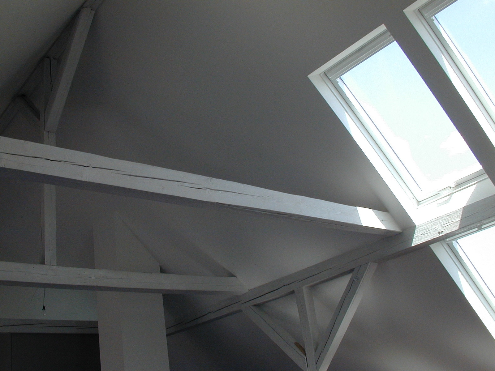 Ein Feld aus vier Dachfenster auf der Nordseite der Dachfläche bringt das notwendige Licht in den Arbeitsraum.
