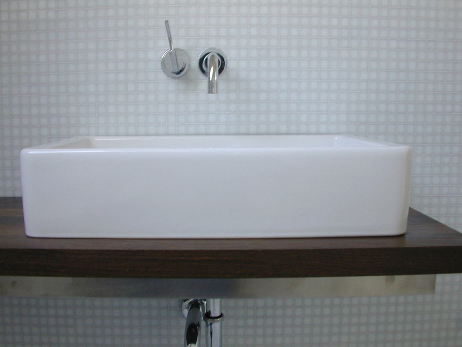 Im Innenraum der Box ist ein Duschbad untergebracht, das mit seinen hochwertigen Materialien in Kontrast zu der einfachen Aussenhaut steht. Über eine transparente Decke aus Plexiglas kann der Innenraum auch bei Dunkelheit von aussen beleuchtet werden.