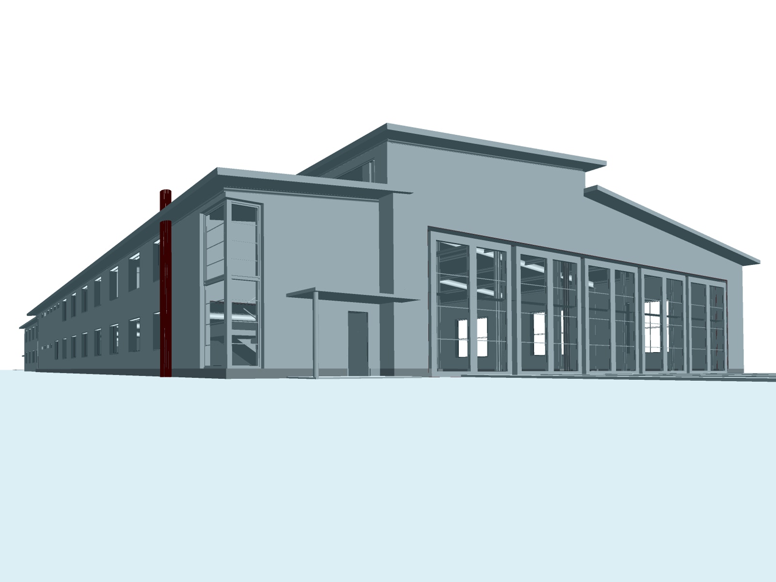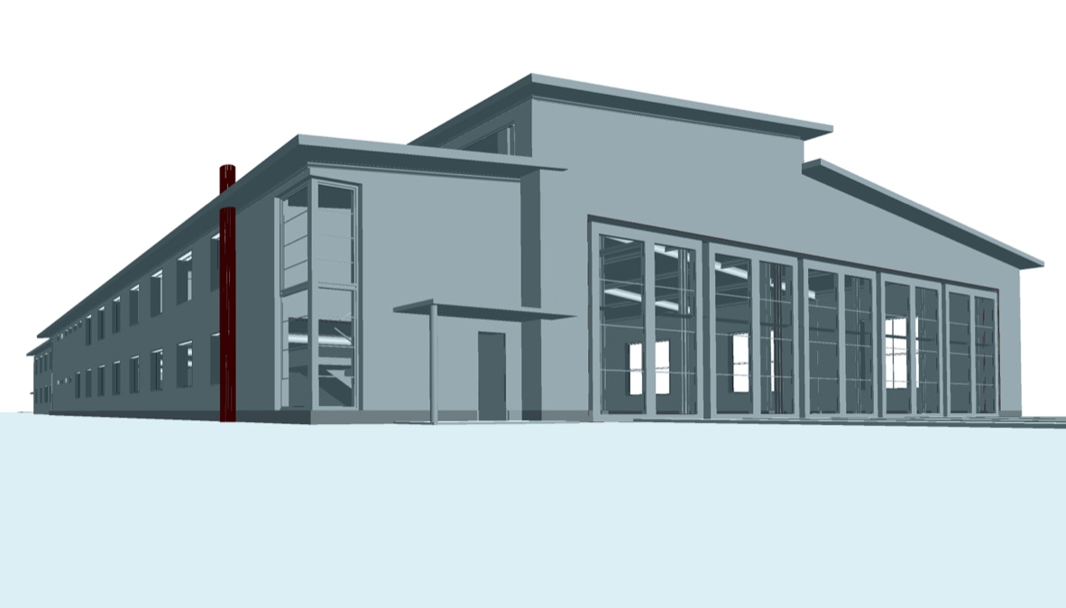 Um wettergeschützt an der Instandsetzung der historischen Schienenfahrzeuge arbeiten zu können, sollten fünf der insgesamt sechs bestehenden Gleiskörper überdacht werden. Ein Nebengebäude nimmt die Werkstätten, Büro- und Sanitärräume auf.