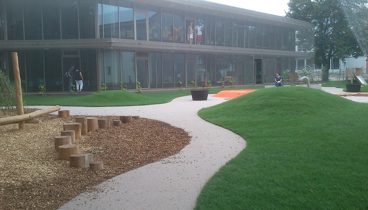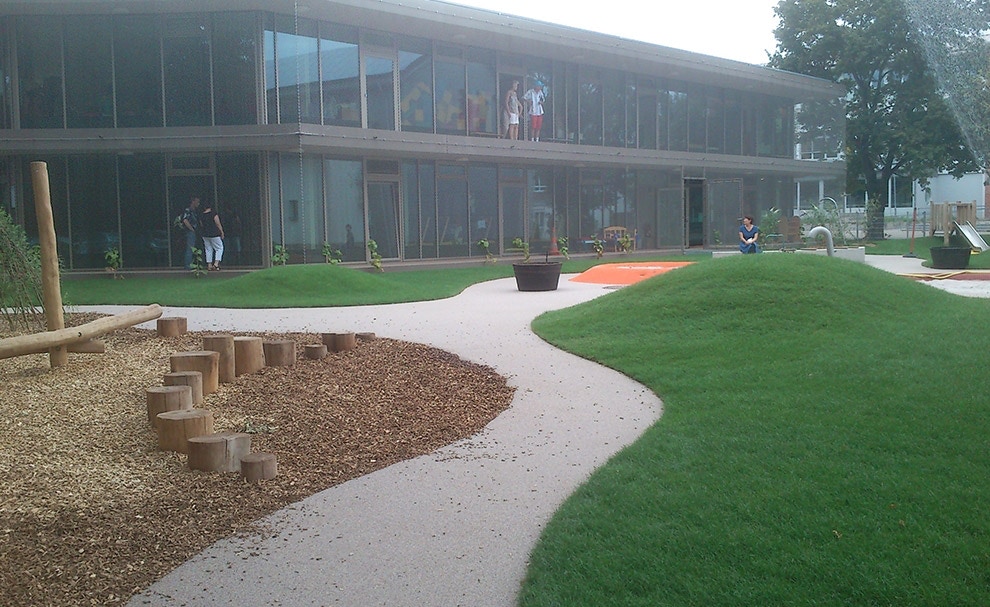 Eine starre Gruppenzuteilung der Kinder wurde zu Gunsten einer individuellen, in Kleingruppen temporär organisierten Arbeit nach Einzelinteressen, aufgegeben. Zuschnitt und Größe der Räume ist allein über die Funktion des Raumes definiert. Entsprechend diesem pädagogischen Grundkonzept ist die Anordnung relativ frei von einem geometrischen Grundraster und ist ausgerichtet auf mögliche Veränderungen und Umbauten.