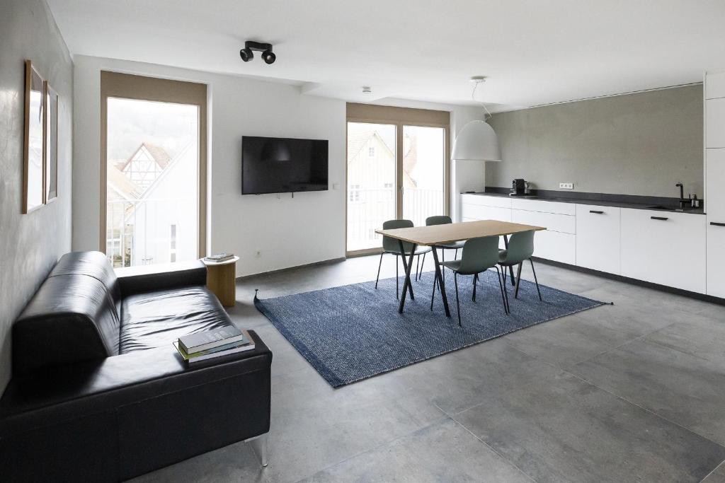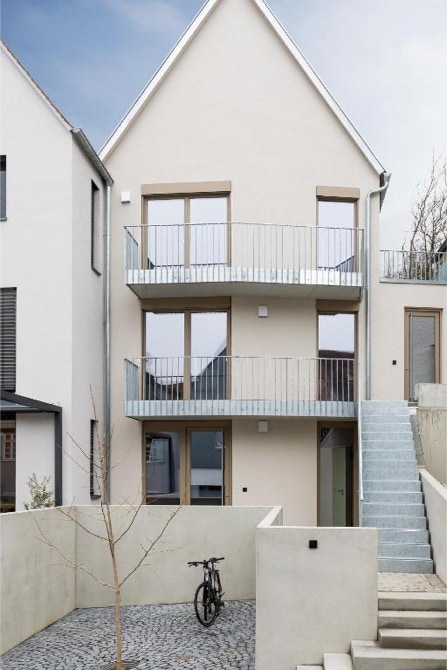An der alten Stadtmauer von Schwäbisch Hall sollte in einem schmalen Baufenster ein kleines Apartmenthaus mit 3 Wohneinheiten entwickelt werden.